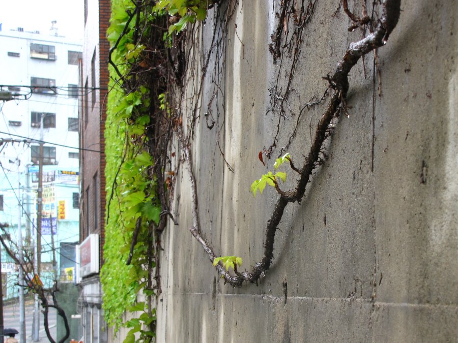 어떤 벽에는 담쟁이가 가득하고 어떤 벽은 아직 잎도 나오지 않았다. 하지만 절등은 보인다. 싹이 나지 않은 담쟁이는 죽은 걸까?