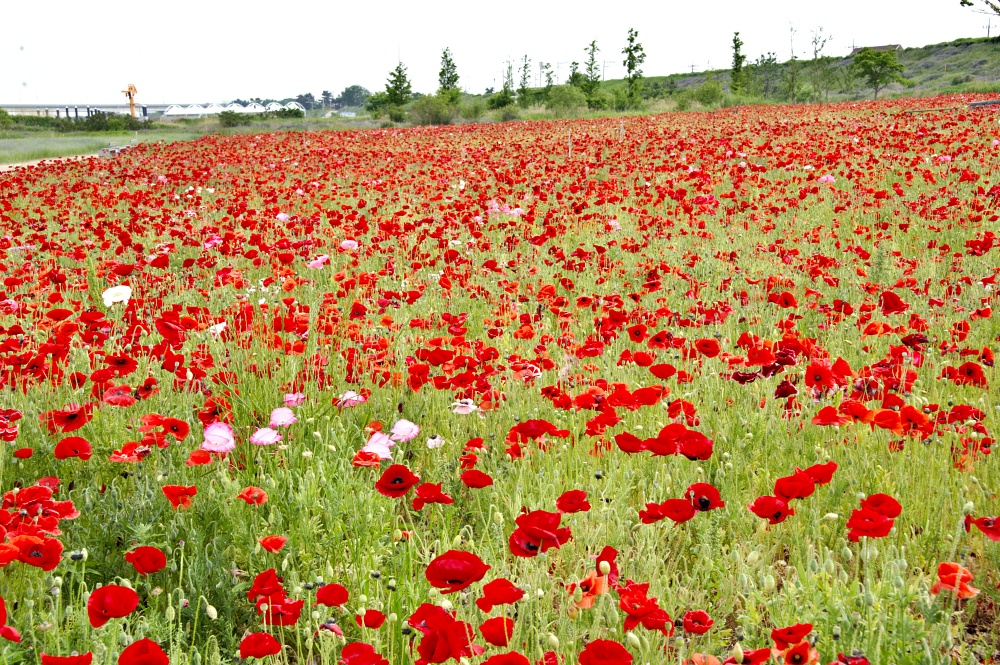 들양귀비가 이렇게 많은 곳은 처음입니다. 새빨간 양귀비가 땅을 덮고 있네요.