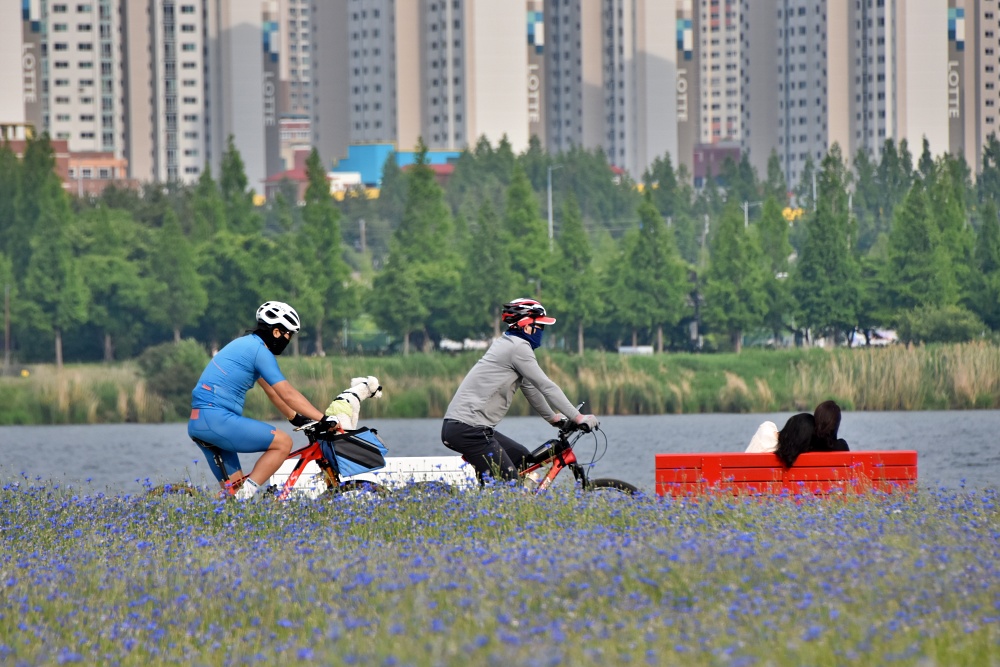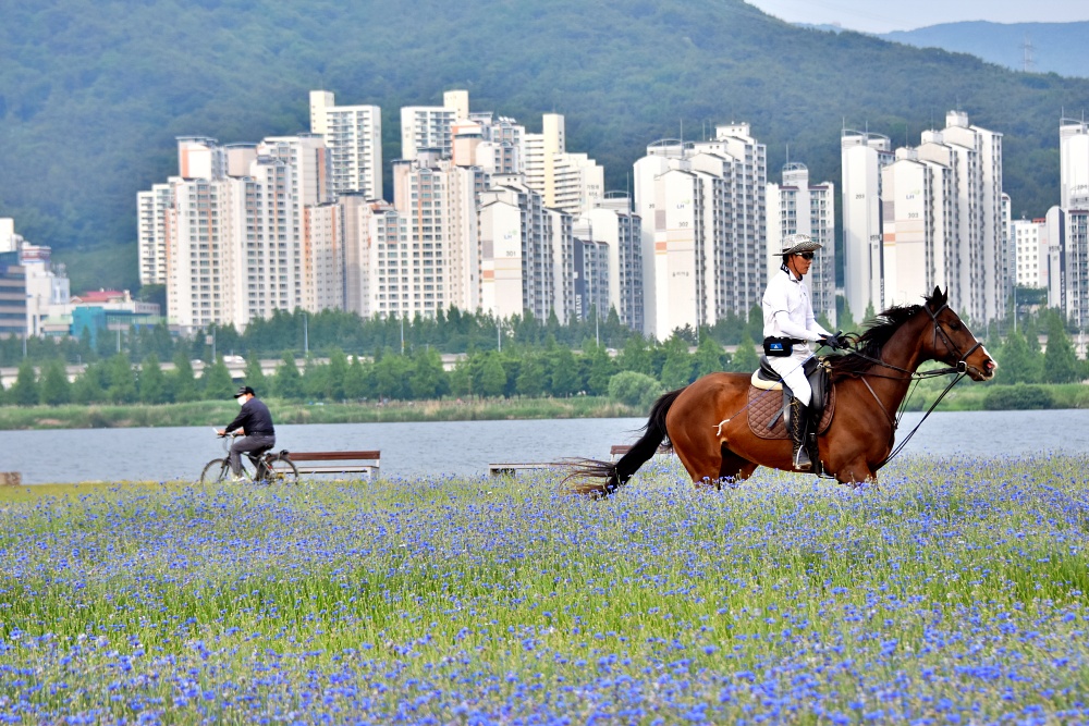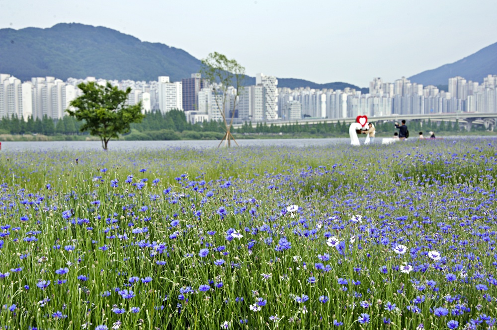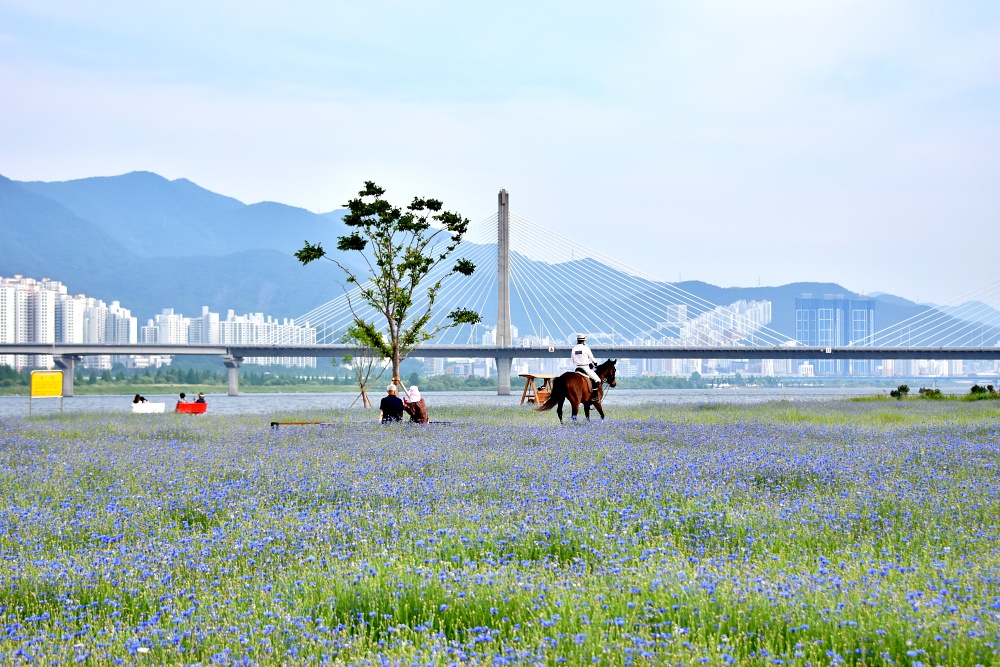한없이 펼쳐진 청색의 수레국화가 장관을 이룹니다.