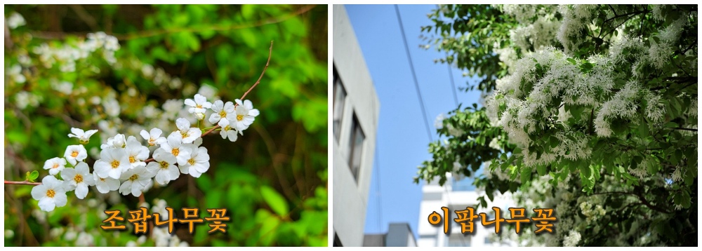이팝나무와 조팝나무나무는 전혀 다른 개념의 나무이고 꽃이다. 조팝나무는 크기가 2m가 채 되지 않으며 꽃잎도 5개로 되어 있다. 하지만 이팝나무는 10m 넘게 자라며 꽃잎도 국수 줄기처럼 길다.