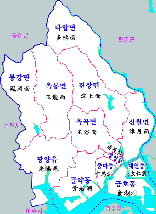 광양시 행정지도는 위키백과 광양시에서 가져왔습니다. 제작자 Gloyacks
