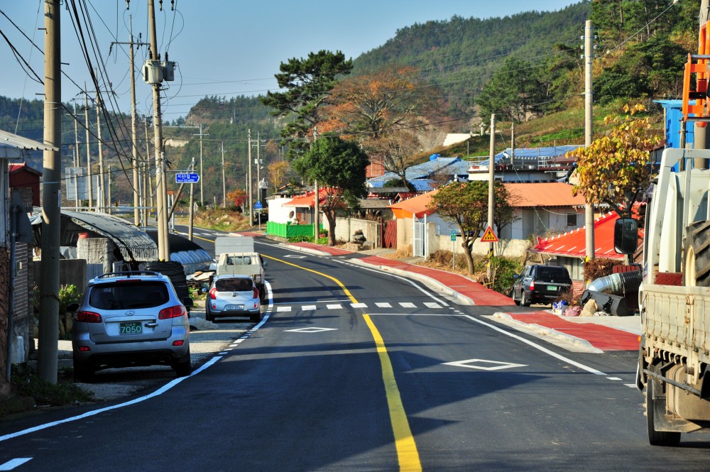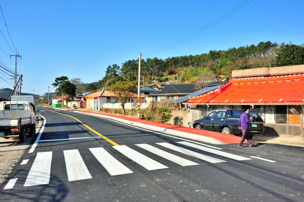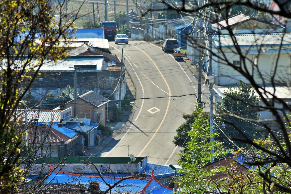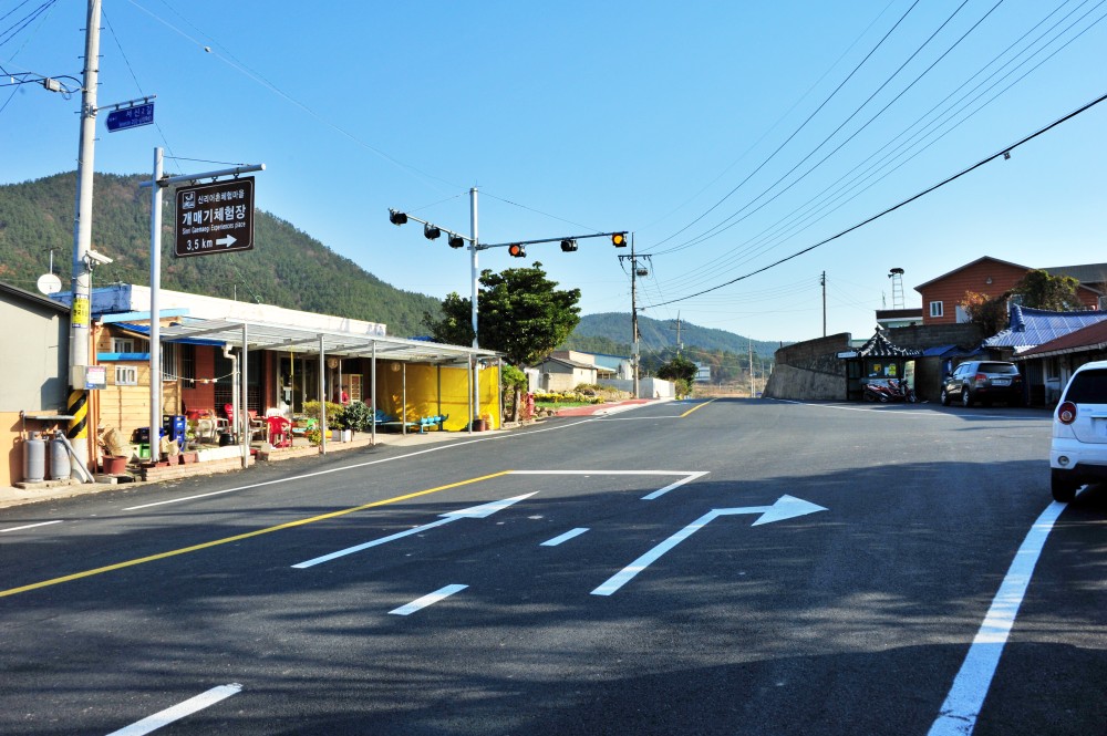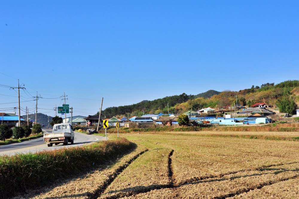도로 표지판 있는 곳이 동신 마을 입구이다.