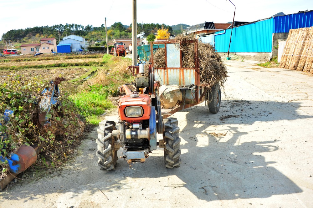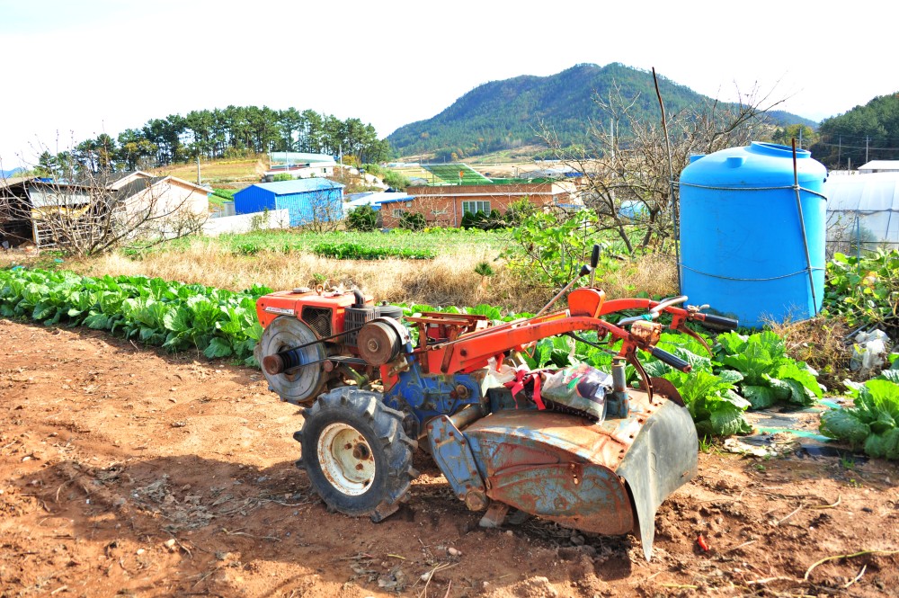경운기. 저 멀리 보이는 산은 옹암 뒷산이다. 산 이름을 모르겠다.