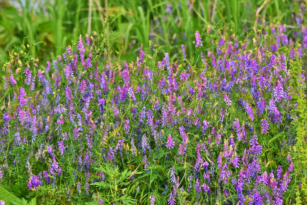 들에 나가면 엉컬어진 머리카락처럼 수풀을 이룬 잡초더미에서 보라색의 꽃을 피운 꽃이 있습니다. 갈퀴나물꽃입니다.